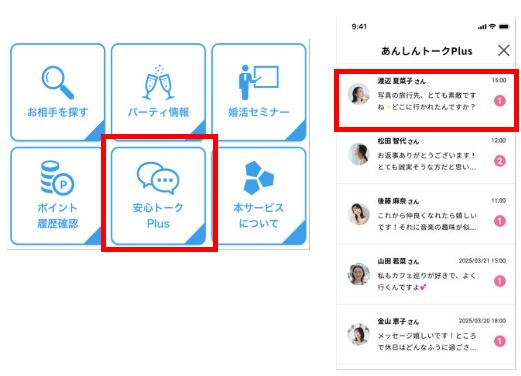 - 下部メニューから [安心トークPlus] をタップ。(画像左の赤枠)
